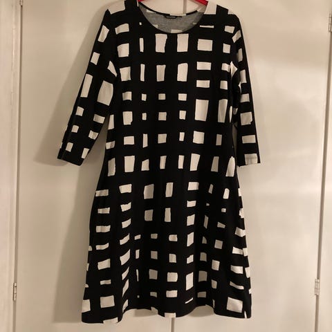 Marimekko Muut mekot mekko mustassa värissä, koko 40. Mekossa on mustavalkoinen pallokuviointi ja se on valmistettu laadukkaasta materiaalista. Sopii naisille ja erilaisiin tilaisuuksiin.