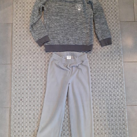 Lämmin ja mukava vaaleansininen fleece asu koossa 122/124. Eläimetön ja savuton koti.