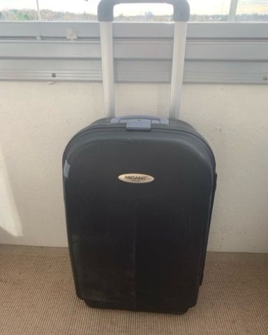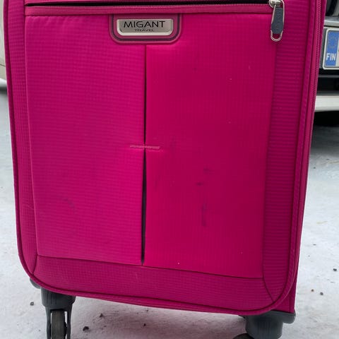 Hyväkuntoinen matkalaukku/treenilaukku. Pyörät sekä kahva ehjät. Myös hihna, mikäli tahtoo olalla kantaa. Nouto