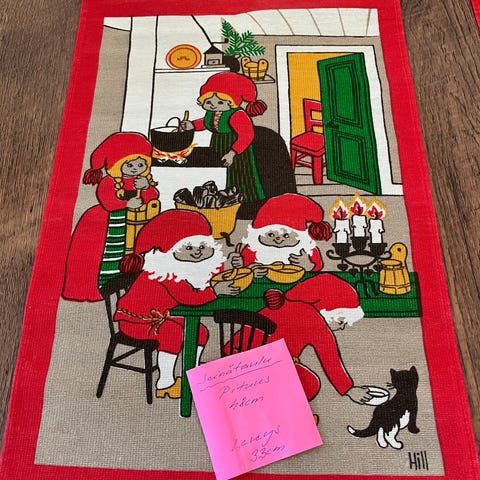 Joulutyyny 40*40 *4 cm. Molemminpuolinen samannäköinen.