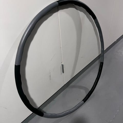 Hoop Hula-Hoop harjoitteluväline, jossa on harmaa ja punainen väri. Sopii liikuntaan ja kuntoiluun eri ikäisille käyttäjille.
