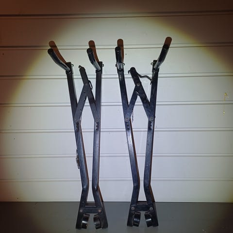 Tukeva ja siisti pyöränkuljetusteline, jossa pyörät kiinnittyvät napakasti ja tukevasti. Soveltuu useimmille henkilöautoille. Kuvien mukaisessa kunnossa.