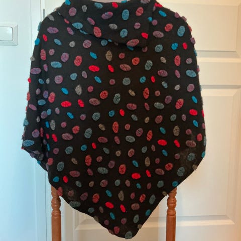 Zizzi merkin musta-harmahtava poncho, koko s/m, käytössä ollut L/XL kokoa käyttävällä. Pesulappu leikattu pois.