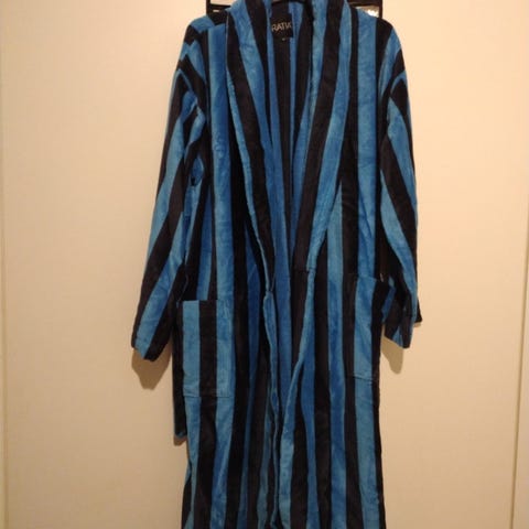 Kuivaavaa materiaalia oleva froteekylpytakki taskuilla ja narulla
