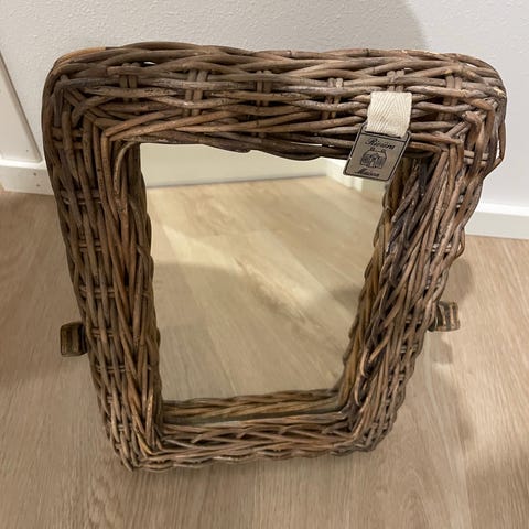Pyöreä Riviera Maisonin rottinkipeili, jonka halkaisija on 39cm. Nouto Turku-Naantali tai postitus.