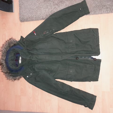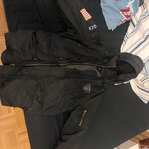 Myynnissä Tommy Hilfiger takki, koko 176, tumman sininen. Takin kunto siisti/ehjä, toppaukset hieman kasaantuneet jostakin kohdin, ei pahasti (hinnassa huomioitu) hyvä/lämmin käyttötakki.