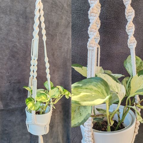 Puhtaanvalkoinen amppeli vaaleilla puuhelmillä.