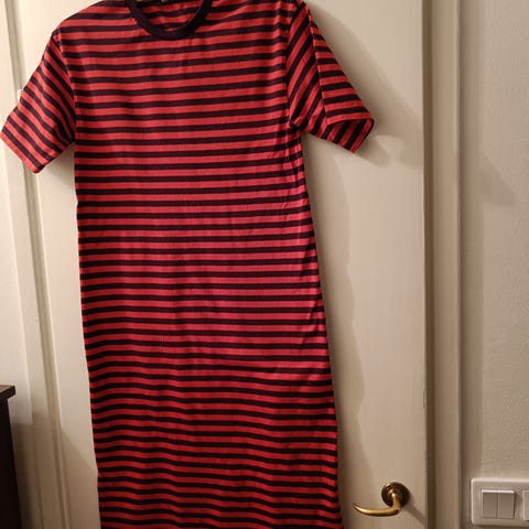 Myydään Marimekon Rusko tasaraita light -yömekko, koko L. Väri: viininpunainen-persikka.