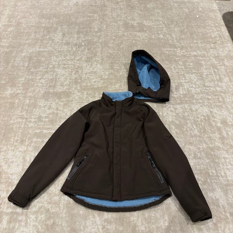Horzesta ostettu uutta vastaavassa kunnossa oleva softshell-takki ratsastustakki, koko XS. Pitkässä ja monipuolisessa softshell-takissa on irrotettava huppu. Edessä kaksisuuntainen vetoketju ja vetoketjulla avautuva halkio takana joka mahdollistaa satulan suojaamisen häiritsemättä ratsastusta. Säädettävät hihnat ja painonapit vyötäröllä. Sivutaskut ja kaksisuuntainen vetoketju viimeistelevät tyylikkään ulkonäön.