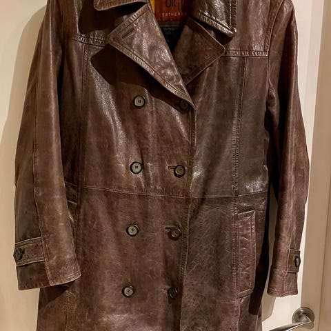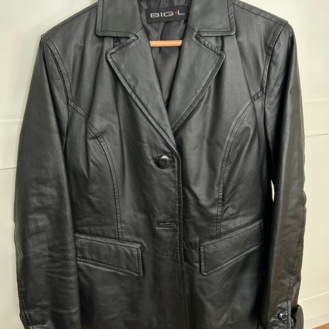 Erittäin hyväkuntoinen paksuhkoa nahkaa oleva takki / jakku, jossa vetoketju edessä, taskuissa ja hihansuissa. Pienet olkatoppaukset. Ryhdikäs ja tyylikäs. Koko 40. Toinen sivusauma hiukan ratkennut, mutta ei ulotu vuorikankaaseen saakka. Varmaan helposti korjattavissa. Merkki Big L.