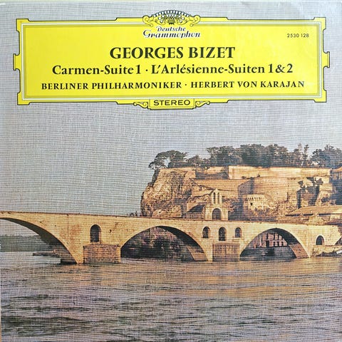 Bizet Carmen CD-levy, julkaistu EMI:ltä. Sisältää oopperan Carmen teoksen, esittäjinä solistit ja kapellimestari André Cluytens.