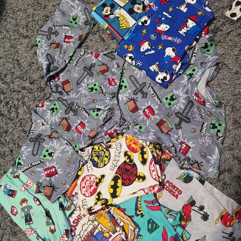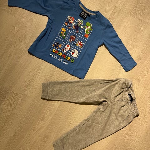 käyttämätön pyjama.paita on sininen lyhyt lahkeiset housut mustat.koko 104/110