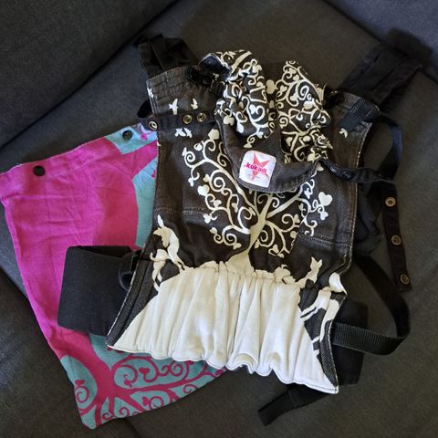 Tässä yhdistyy kantoliinan ja kantorepun parhaat puolet; Helppo pukea, paino jakautuu tasaisesti ja lapsen saa sidottua sopivaan kohtaan kantajan ominaisuuksista riippumatta.