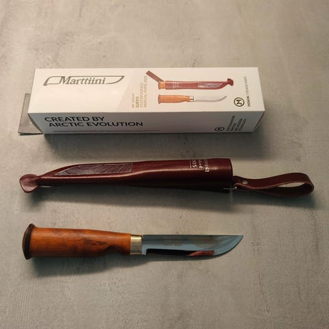 Marttiini hyväkuntoinen puukko tuppi visakoivua