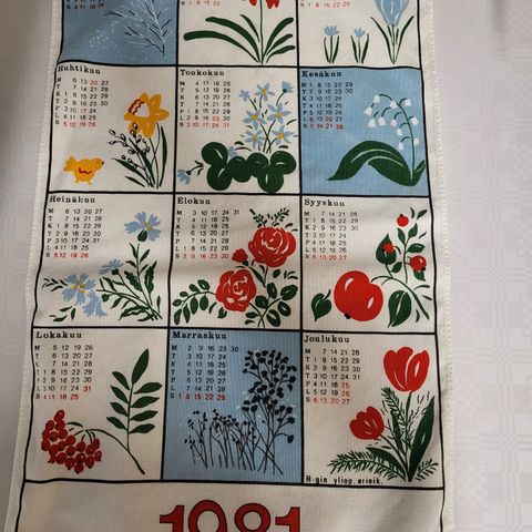 Vuoden 1978 kalenteripyyhe. On siistikuntoinen.