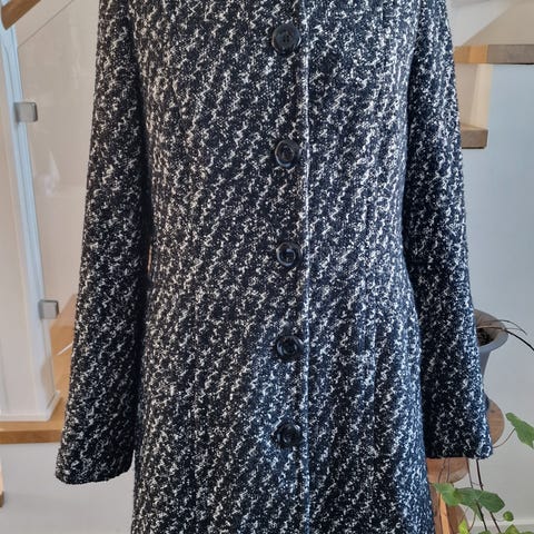Kuvanmukainen uudenveroisessa kunnossa oleva naisten villakangastakki. Laadukas, ja ajaton takki, jossa vuori. Takki on lämmin ja tuulenpitävä. Kaunis malli. Värinä tuollainen harmaan beige.