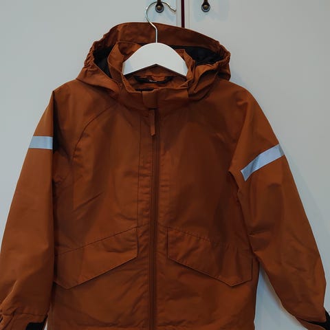 Yhdellä käytetty vaaleanpunainen Kaxs vedenpitävä kuoritakki, koko 104. Reilua kokoa, mennyt helposti vielä koossa 110.