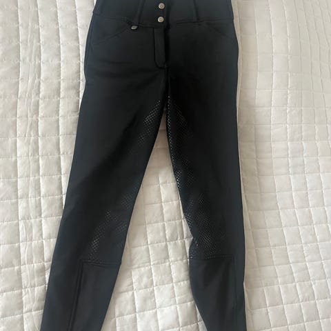 Horze Grand Prix kokopaikkaiset ratsastushousut silikonigripeillä. Koko 38. Väri musta. Sukkapuntit ja kaksi taskua edessä.