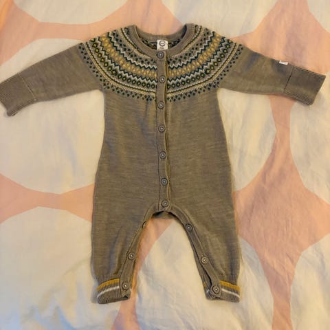 Erinomaisessa kunnossa oleva vauvojen 100% merinovillahaalari sileää neuletta.