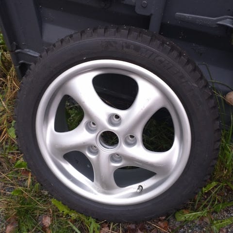 Porsche 996 alkuperävanteet 17 tuumaa ja Michelin nastarenkaat