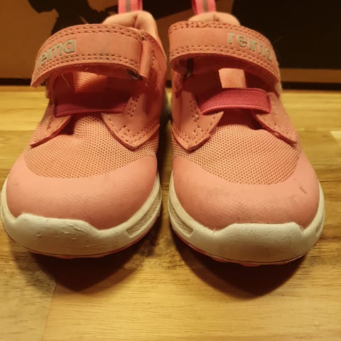 Reima astelu kengät koko 24, sm 15.3cm. Nauhoissa jossain kohdassa kulumaa, samoin sisäpohjallisessa kantapäässä. Kantapään kohdalta pinta ehjä.