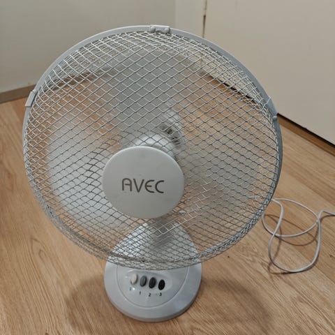 Helppokäyttöinen ja toimiva tuuletin, jossa kaksi eri tuulettimen nopeutta.
