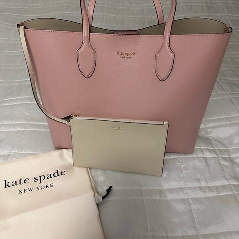 Kate Spade laukku myyntiin. Erittäin vähän käytetty. Laukun kunto erinomainen! Laukun mitat: leveys 42cm, korkeus 28cm ja syvyys 13cm. Pikku laukku tulee mukaan, jonka leveys 20cm ja korkeus 13cm. Dustbag kuuluu settiin. Hinta 160e