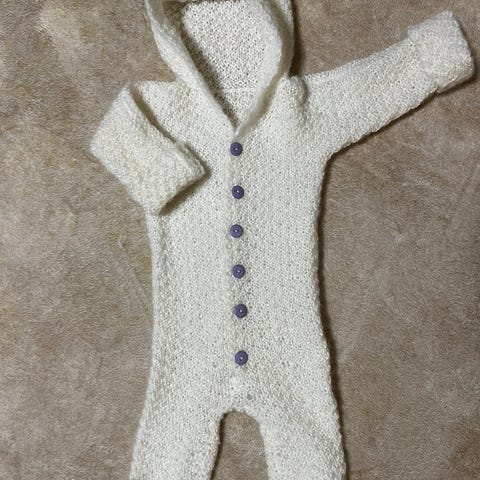 Myydään vauvan villahaalari. Käsin neulottu. Lankamerkkiä ei tiedossa. Haalarissa vetoketju.