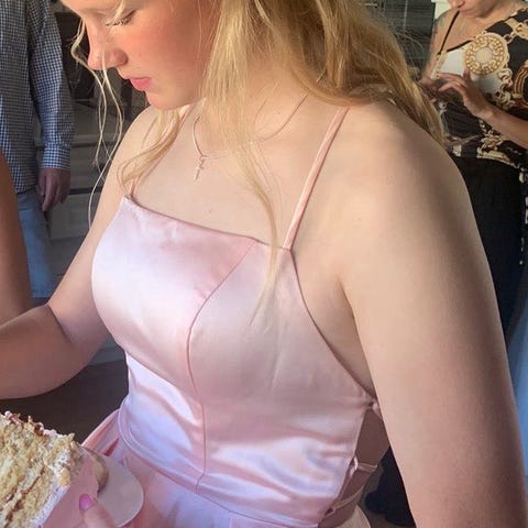 Kaunis uudenveroinen rippi/juhlamekko kokoa 32. Selän nyörityksellä koko muokattavissa.