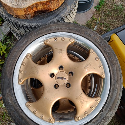 Vw sharanin renkaat myynnissä, jääneet tarpeettomiksi, olleet aika pitkään varastossa. Vanteet ovat tosi hyvässä kunnossa kuten kuvista näkee, mutta samaa ei voi sanoa noista kumeista. Kumit ovat vuodelta 2010 ja hyvin huonossa kunnossa, kolmessa renkaassa pintaa jäljellä 5 mm ja viimesessä 3 mm. Kumit on myös asennettu väärinpäin, kumien toinen reuna oli kulunut niin se laitettiin toisinpäin.