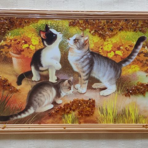 Kissa- ja lammastaulut puukehyksillä esim. lastenhuoneen seinälle. Kuvat kankaasta. Taulujen koko 23 cm x 31.5 cm. Hinta yht, 10€.