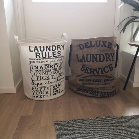 Valkoinen vaaleanpunaisilla sydämillä koristeltu kokoon saatava säilytyskori, leluille, pyykeille jne.
