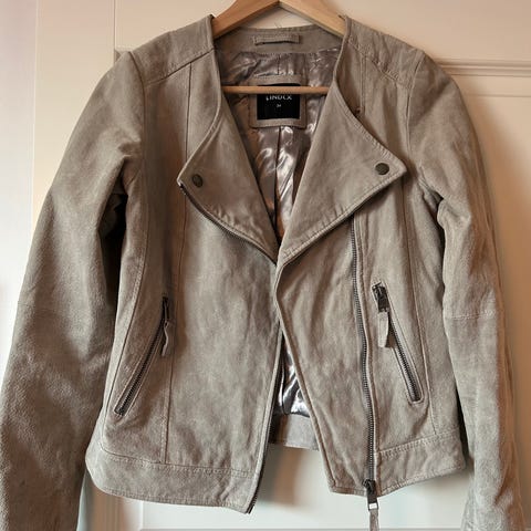 Hyväkuntoinen, siisti takki tai jakku mokkamaista kangasta, vesipesu mahdollista tarvittaessa.