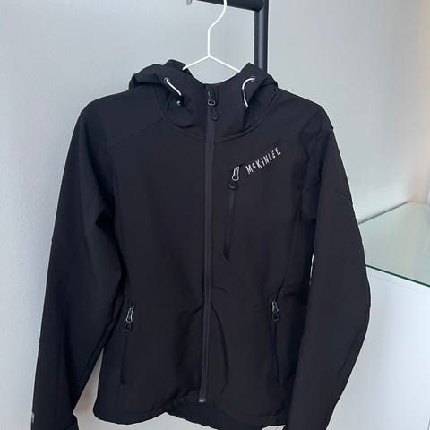 Hyväkuntoinen musta ulkoilutakki. Vetoketjutaskut, joista toinen vaikuttaa siltä, että olisi pian menossa rikki (kuva).