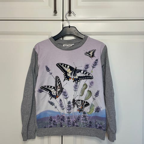 Molo Harmaa tyttöjen pitkähihainen paita, koko 128. Kunto on erittäin hyvä, enkä löytänyt mitään huomautettavaa.