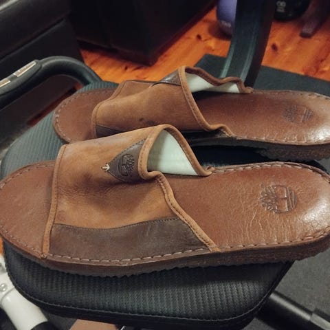 Timberland sandaalit, koko 41,5, ruskeaa nahkaa. Muutaman kerran jalassa käyneet nuorella kesällä - ja ei enää käyttöä. Kokolapussa EU 41,5.