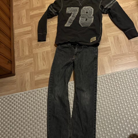 Kolmet mustat housut pakettina, kaikkien koko vastaa noin 140. Mustat ohuet colleget h&m (lapussa 146, pienet), house ohuet koko 140, soc urheilutrikoot, kokotieto kulunut pois, vastaa muiden kokoa. Toridiili