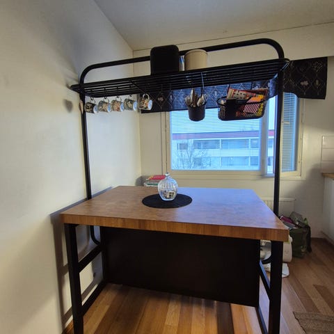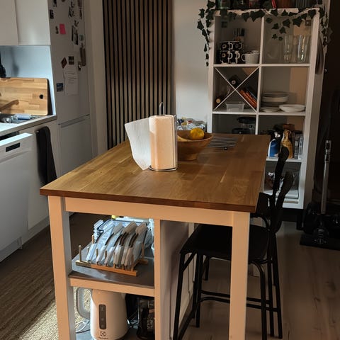 Ikean siisti keittiösaareke + 2kpl baarituoleja muuton takia myynnissä. Elämänpelastaja yksiöön, joissa niukasti kaappitilaa!
