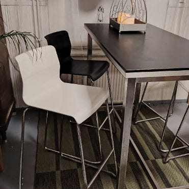 Kunto merkattu ”hyvä” tuolien pienen kuluman vuoksi. Itse saareke on lähes uudenveroinen.