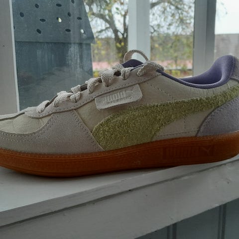 Puma Mint-Pink Fruit tennarit, koko 38, junior-malli. Mintun ja vaaleanpunaisen yhdistelmä todella hyvännäköinen Päällinen nahkaa. Kenkien pohja on kumia. Kerran kokeiltu jalkaan, muuten suoraan paketista.