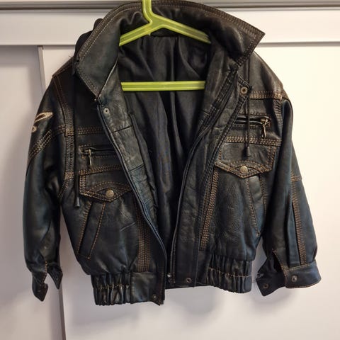 Diesel nahkatakki lasten koko XXL, väriltään musta. Takissa on vetoketjutaskut ja sivuilla nyöritykset. Materiaali on nahkaa, ja takissa on Diesel-logo kultaisella kirjailulla.