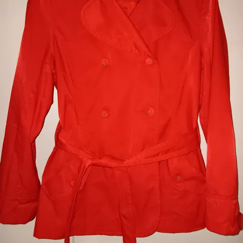 Myydään siisti, beige trenssitakki. Helmassa sisäpuolella ja ulkona takana pientä tummumaa, jota ei ole yritetty puhdistaa.