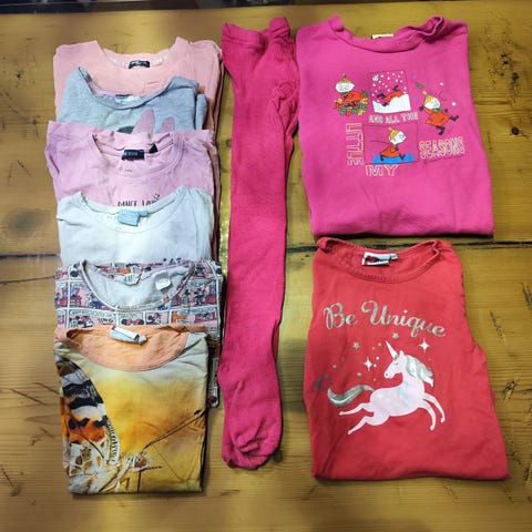 Myydään kuvanmukainen vaatepaketti tytölle koossa 120. Siistissä käytetyssä kunnossa.