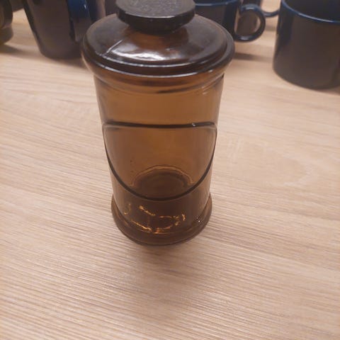 Riihimäen Lasin Kotilasi- säilytyspurkki ja maustepurkki ruskea