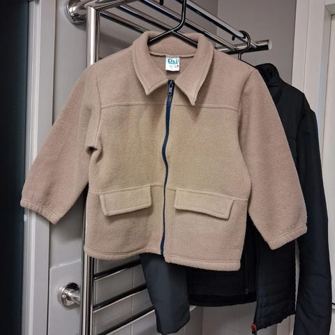 Jonathan paksu fleecetakki. Yhdellä lapsella harvakseltaan käytetty, mutta silti nukkaantunut ja paikoin vaaleaa maalitahraa. Muuten kyllä täysin ehjä ja oikein lämmin syksyyn. Koko 116, mutta meillä ollut käytössä jo 110.