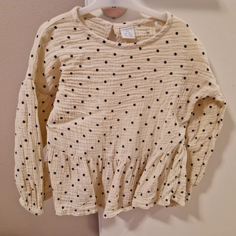 Tyttöjen Paita koko 110-116. Meillä oli käytössä mm. Urheillessa ja tanssiharjoituksissa. Malliltaan lyhyt helma.