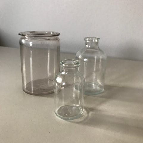 Vanhat apteekin pullot, metallirasiat, purkit yms.