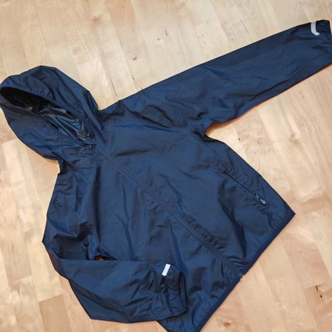 Paikoitellen tummentumaa aran värin vuoksi, mutta siistikuntoinen ja ehjä sadetakki. Koko 122. Kissakoti