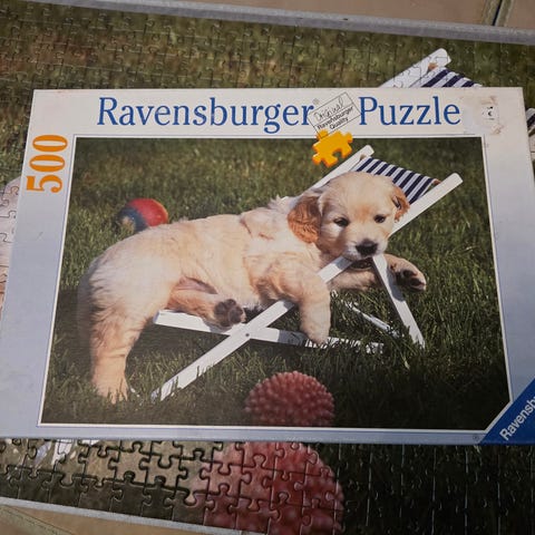 Hyväkuntoinen palapeli, purettuna omassa laatikossaan. Laatikon reunoissa pieni teipinjälkiä.