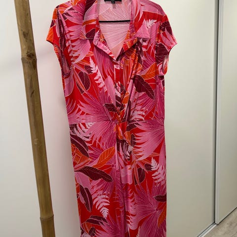 Ilse Jacobsen Muut mekot naisten mekko, koko XL, kirjavavärinen. Materiaali koostuu 95% polyesteristä ja 5% elastaanista. Mekko on konepestävä 30 asteessa, ei saa käyttää valkaisuainetta, voidaan silittää viileällä raudalla ja se ei sovellu rumpukuivaukseen. Valmistettu Liettuassa.